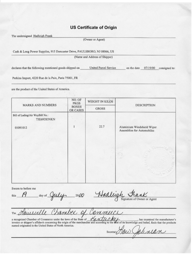 Loại COO được sử dụng đơn thuẩn để chứng minh xuất xứ thường do đơn vị giảm định, cơ quan nhà nước, hoặc thậm chí là nhà xuất khẩu cấp. Trên thực tế theo yêu cầu của khách hàng, mà nhà nhập khẩu sẽ yêu cầu loại COO này thay vì COO dung theo form để miễn thuế nhập khẩu. Loại COO này không theo bất cứ form mẫu nào, đây chỉ như những chứng chỉ thông thường, có ghi nguồn gốc xuất xử của hàng, bạn có thể tham khảo mẫu COO bên dưới: