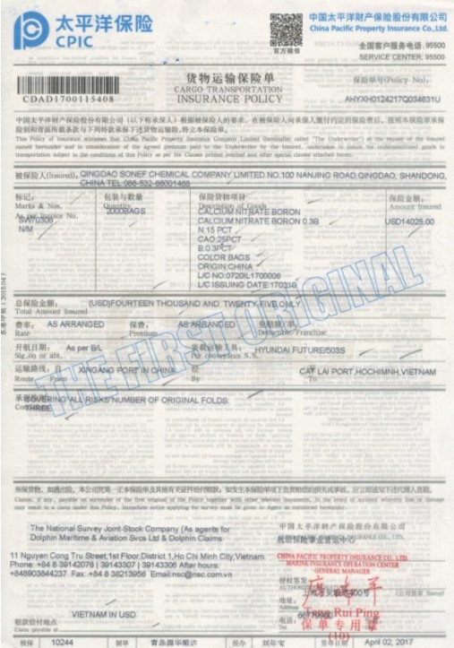 2. Chứng thư bảo hiểm hàng hóa bằng đường hàng không