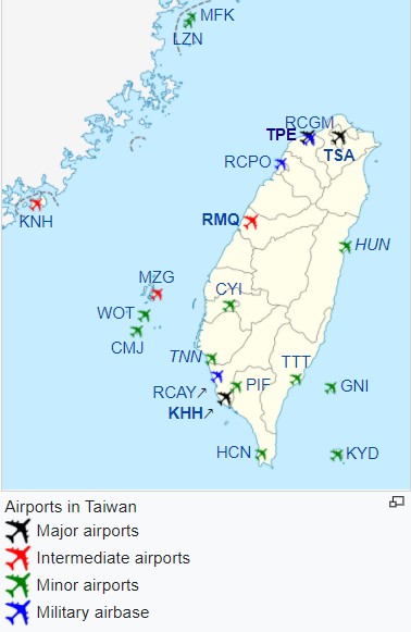 2. Cảng hàng không quốc tế chính tại Đài Loan