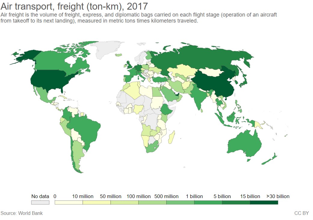 Trên thực tế trọng lượng hàng hóa được vận chuyển bằng đường hàng không chiểm tỷ trọng rất nhỏ trong tổng trọng lượng hàng vận chuyển quốc tế.